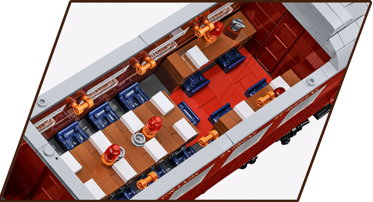 The railway collection from COBI is still growing! Another historical railway wagon in 1:35 scale is joining the series. This is the legendary restaurant wagon that was part of the famous Orient Express, well-known from the armistices in Compiègne. The wagon is one of the most important symbols of both world wars, but it is also inextricably linked to railways, luxury and design style.