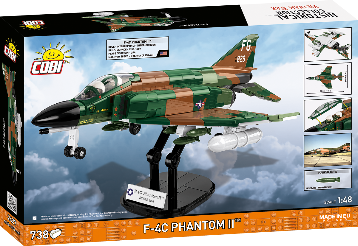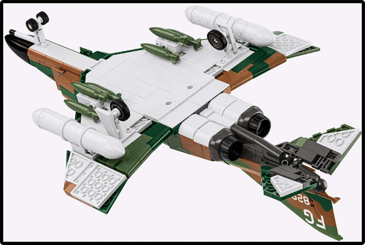 730 elements - The bricks are made with attention to quality and precision. Each element helps to reproduce the characteristic shapes, proportions and unique structural details of the F-4 Phantom II aircraft from its service in Vietnam.
