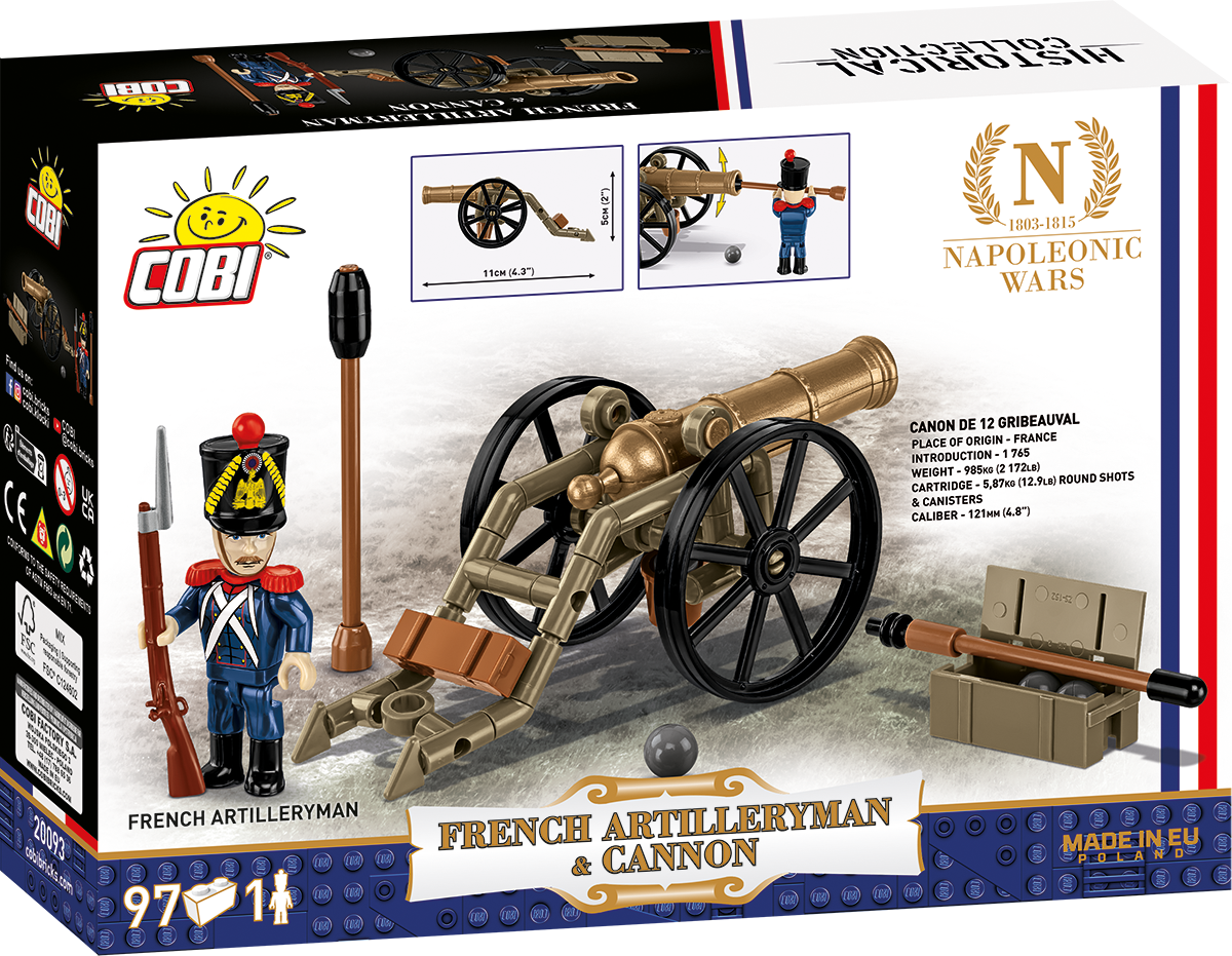 Artillery was Napoleon Bonaparte's pride and joy, and for good reason, as he himself began his military career as an artillery officer. He claimed that "artillery wins the battle," and his approach revolutionized the way cannons were used on the battlefield. French artillery used equipment according to the Gribeauval system, established in the 1770s. These were 4-, 8- and 12-pounder cannons and 6-inch howitzers. 12-pounder cannons, like the one included in this COBI set, were the backbone of firepower in the main battle line. Supported by trained gunners, these cannons could decide battles even before the infantry clash.