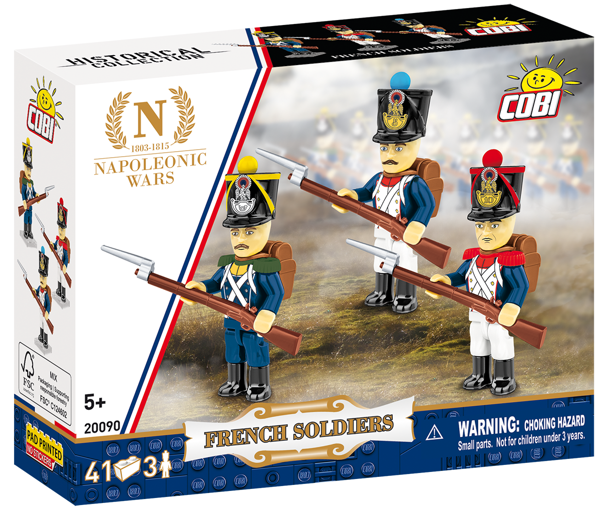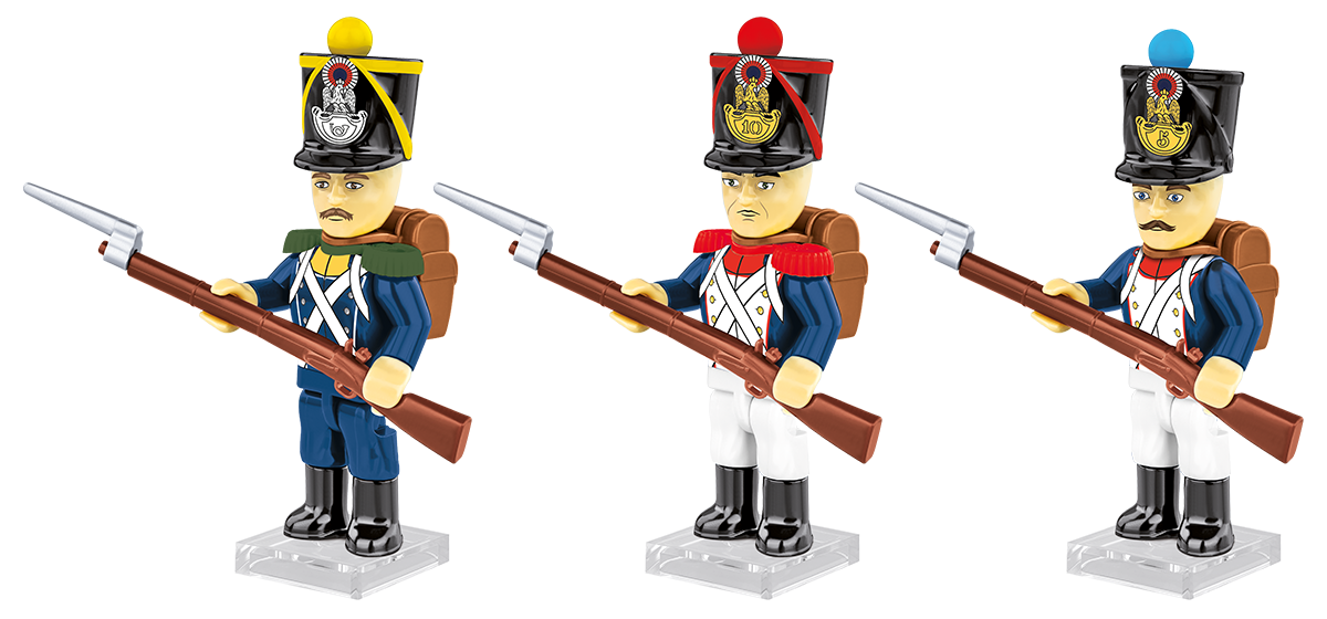 New elements – For the NAPOLEONIC WARS collection, completely new sets of accessories adapted to the realities of the Napoleonic era have been prepared. New shako caps, epaulets, backpacks, rifles with bayonets, pompoms and unique and durable prints. For every history enthusiast – this set is suitable for both play and display. Ideal for children over 5 years old and adult collectors who want to build Napoleonic Wars dioramas for their collection.