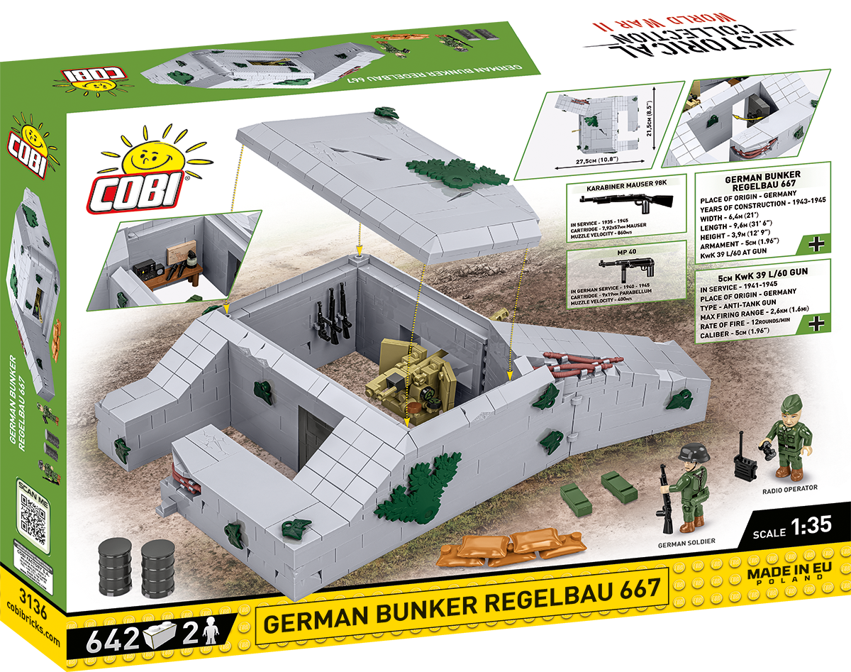 The COBI Regelbau 667 set is a great opportunity to combine your passion for history and block modeling. Thanks to this, you have the chance not only to build an impressive, detailed model of the bunker, but also to delve into the history of one of the most recognizable fortifications of World War II.
