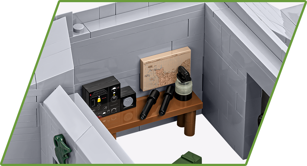 Open roof - The model has an opening roof, which allows you to see the interior of the bunker. This feature facilitates play and encourages role-playing, but also gives you the opportunity to see what the interior of the shelter looked like and what was hidden inside.