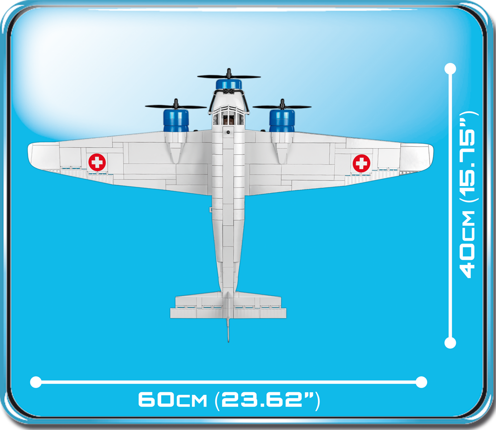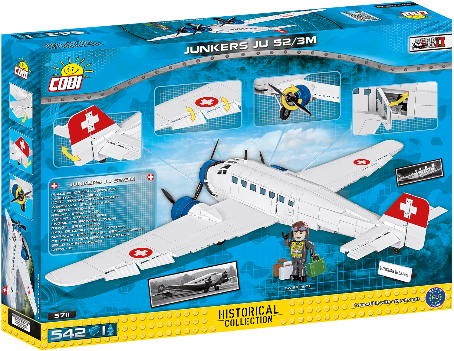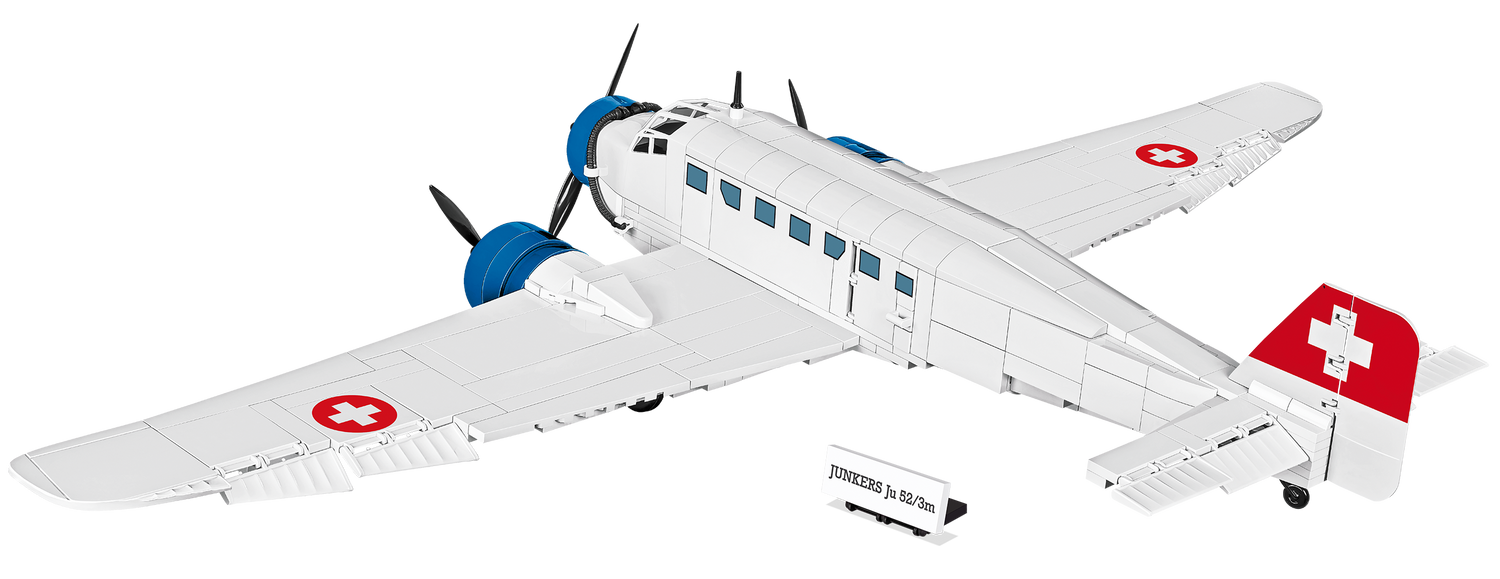 From the world of COBI comes a model of the Junkers Ju 52/3m. The model has many movable elements such as rotating wheels with rubber tires, movable propellers, ailerons and opening doors. A pilot figure comes with the kit. Thanks to the faithfully reproduced proportions and details of the aircraft, the model will be addition for any collection of history and aviation or It would make great toy for even the youngest aviation enthusiast.