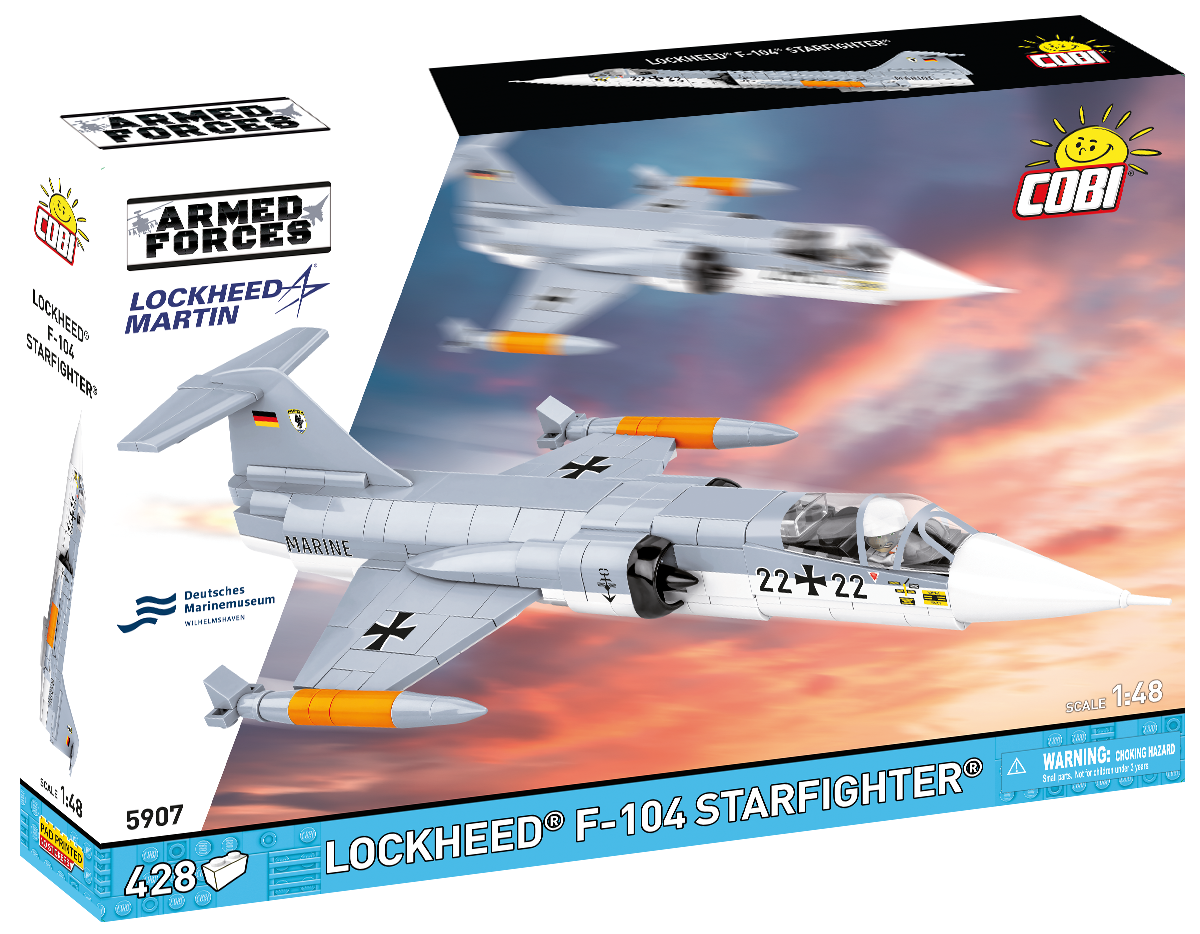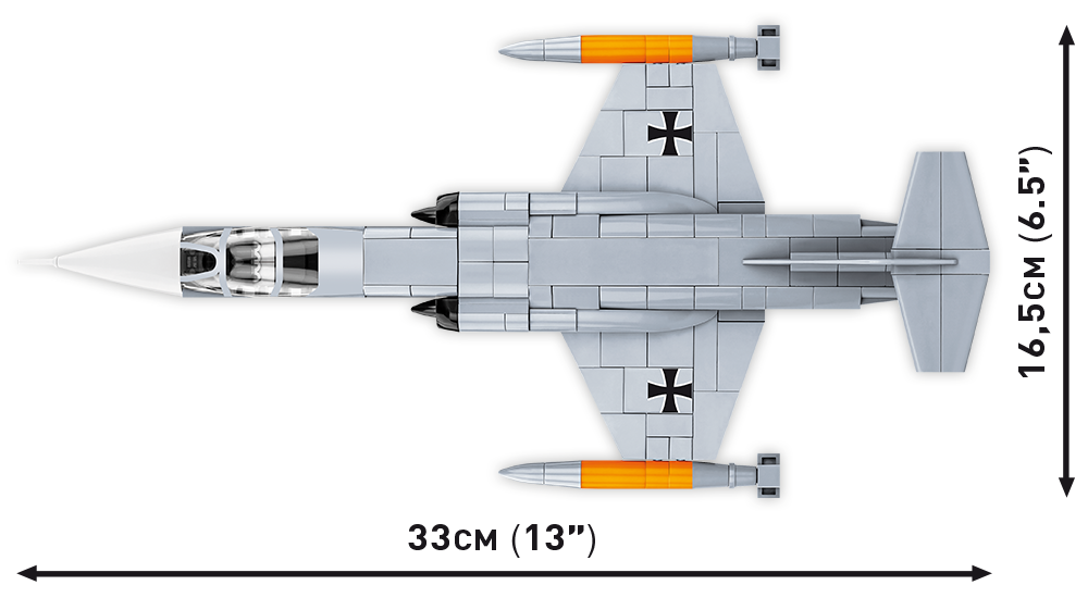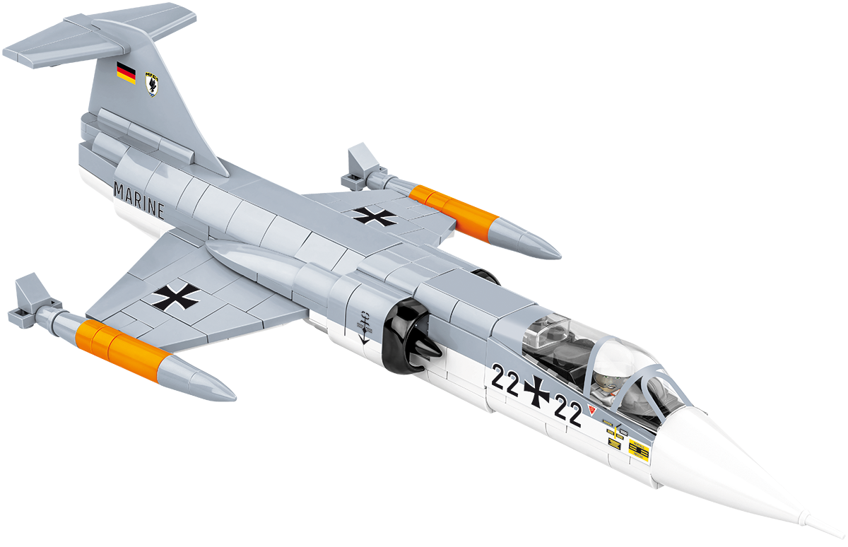 This model is another example of COBI's collaboration with the famous Deutsches Marinemuseum. Based on an F-104 belonging to German Air Force, it was one of 210 aircraft license-produced by a consortium of Messerschmitt, Dornier, Heinkel, and SIAT. It served with the JaboG 33 fighter-bomber squadron based in Büchel near Cochem/Mosel and is today an exhibit at the Deutsches Marinemuseum.