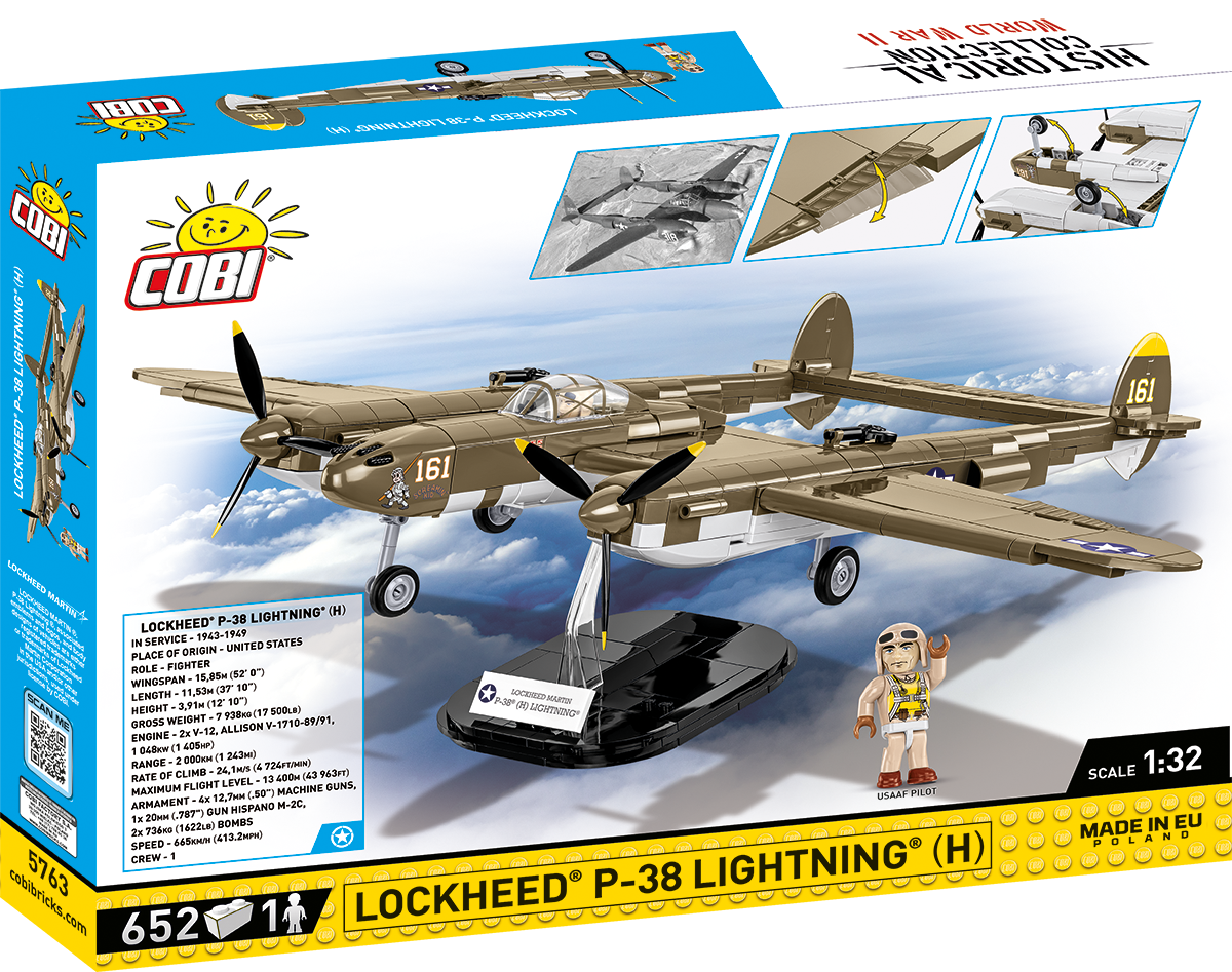 The Lockheed P-38H Lightning set returns to the offer from COBI in a scale of 1:32, in a new color and with more elements - a real treat for lovers of aviation history and block modeling!