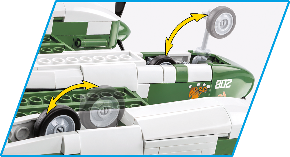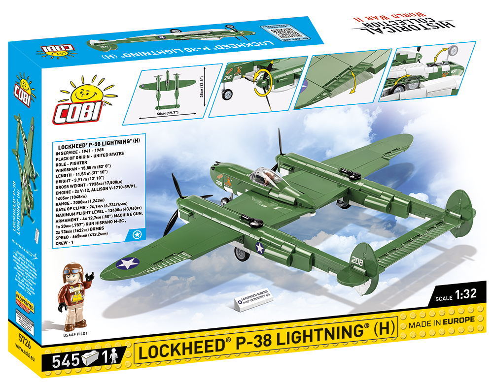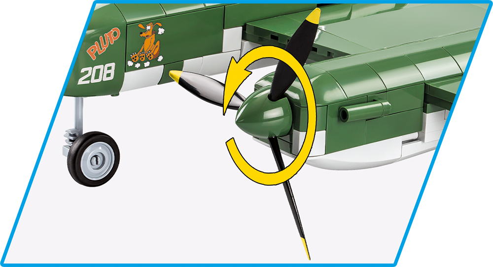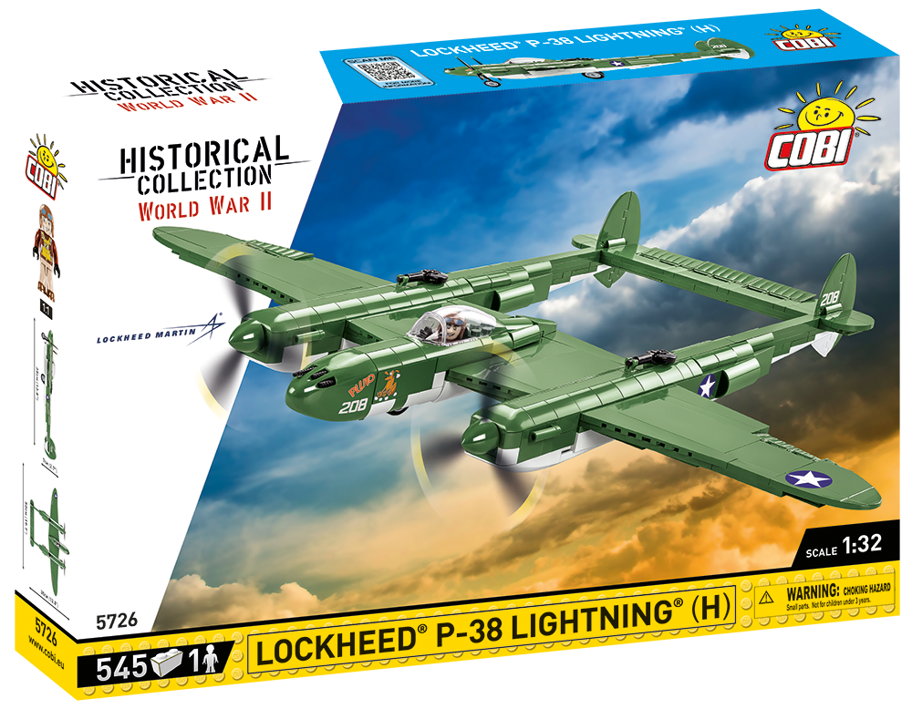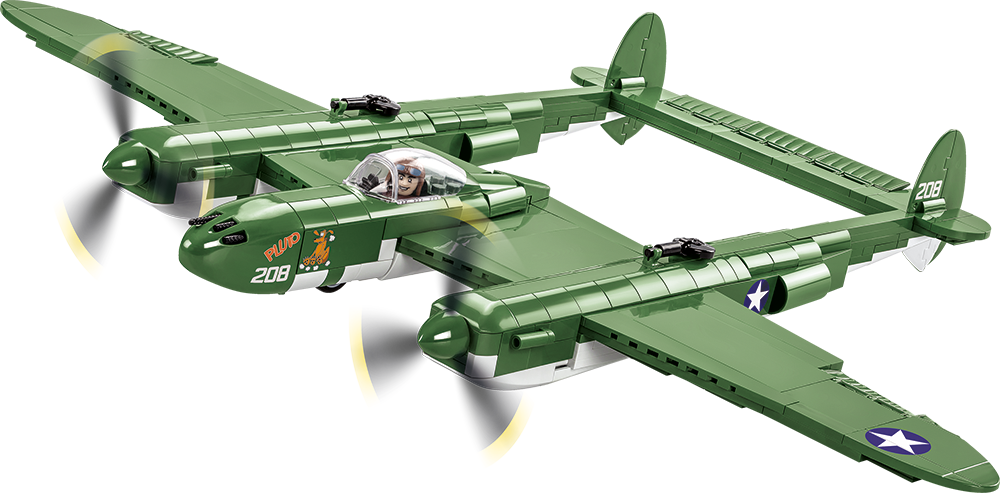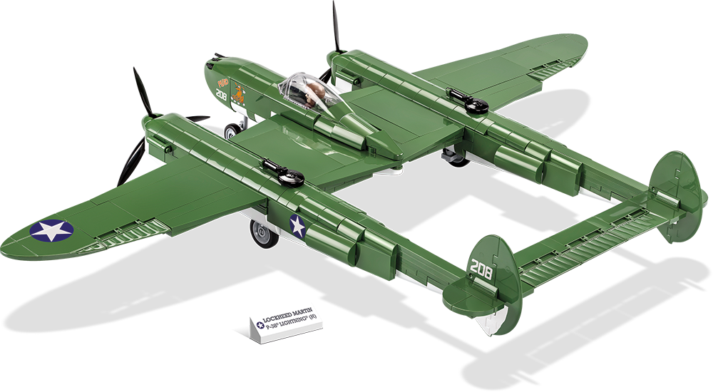 Accurately reproduced in a 1:32 model scale, the aircraft consists of 545 COBI construction blocks. The model is covered with high-quality prints that do not wear off even during intensive use. It is worth paying attention to the characteristic markings and emblems referring to the historical machine bearing the number 208 and the symbol of the dog Pluto. The aircraft has rotating propellers, folding landing gear, movable ailerons and an opening cabin in which you can place a well-designed pilot figure. The whole set is complemented by a brick with the name of the set and the Lockheed Martin logo printed on it.