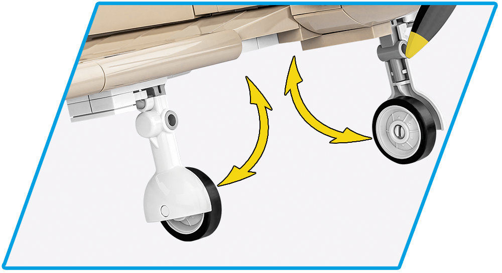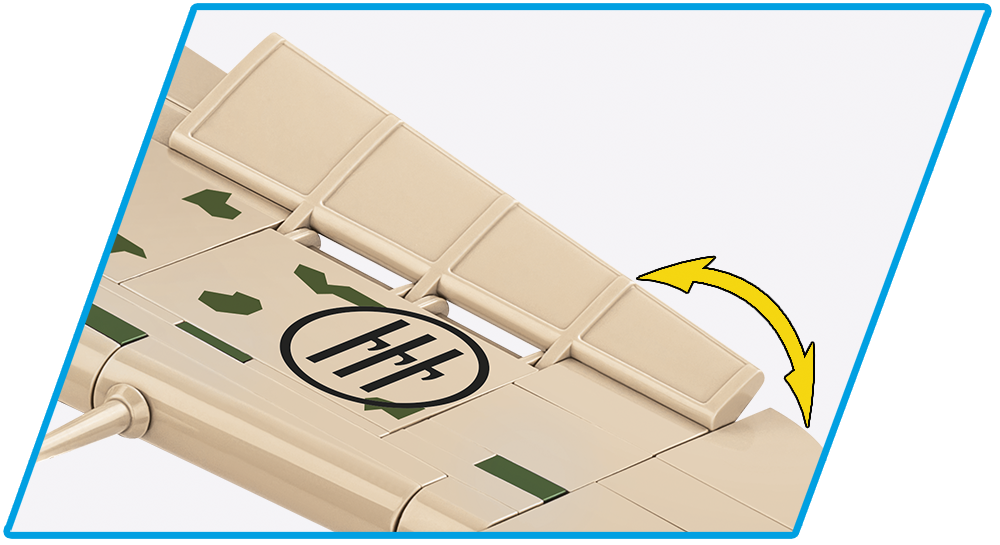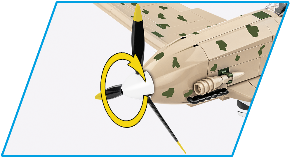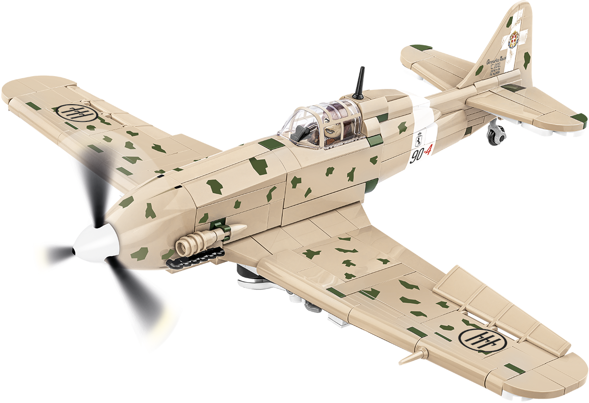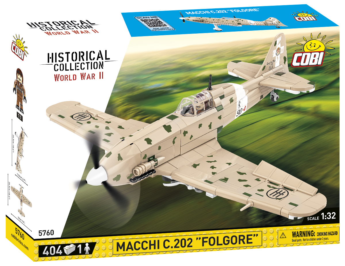 Made of 404 elements, the plane introduces a breath of Mediterranean freshness to the COBI collection. The model has camouflage from the theater of operations in the Mediterranean basin. Using durable and permanent prints, green spots were applied to the sand base, blurring the silhouette of the machine in the air. The fighter has a folding landing gear, movable flaps and a perfectly reproduced figure of an Italian pilot can be placed under the removable cockpit canopy. The plane has a standard display stand with the name and a transparent pilar, thanks to which the plane looks like it’s flying.