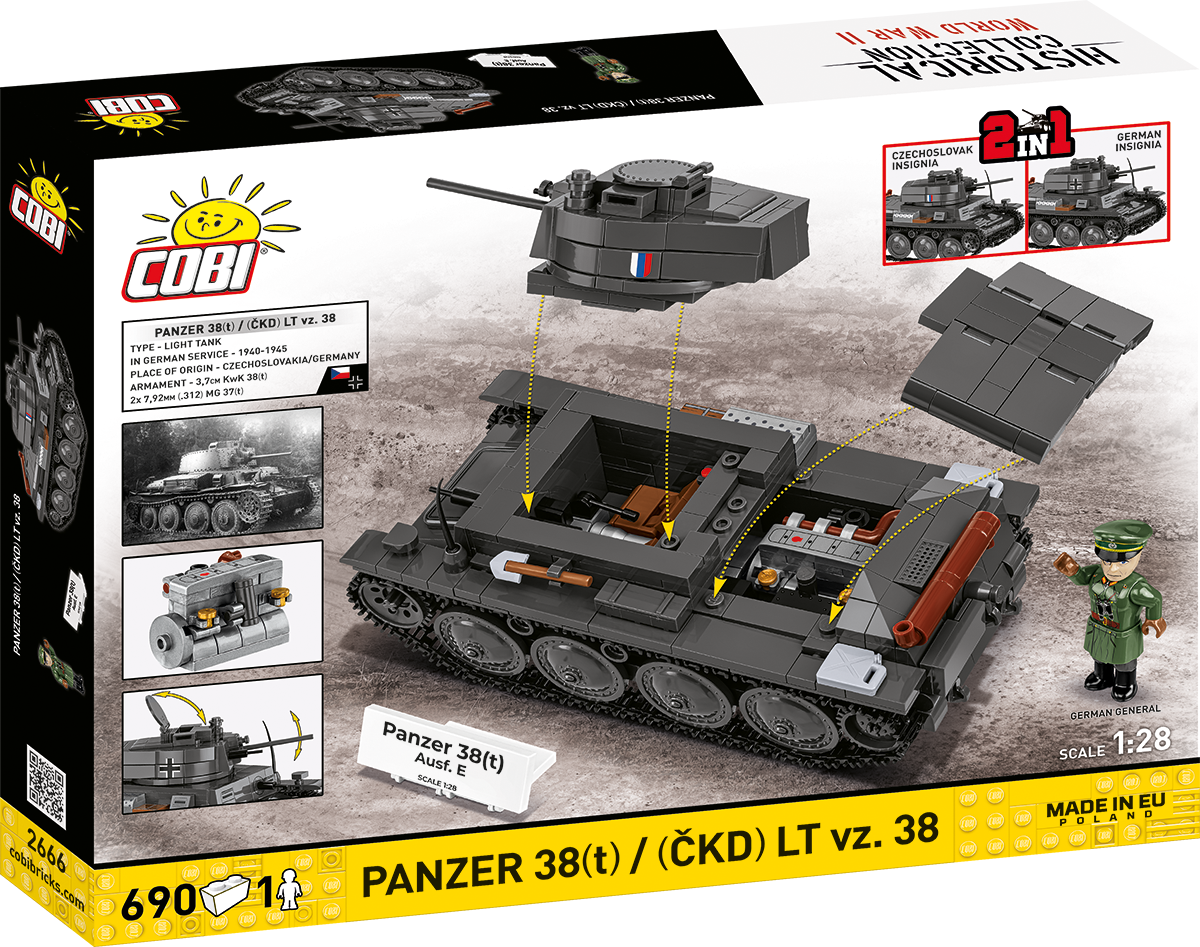 Discover an extraordinary 2-in-1 set from COBI that lets you build two historical versions of the tank: the LT vz. 38 with Slovak markings and its German variant, the Panzerkampfwagen 38(t)!
