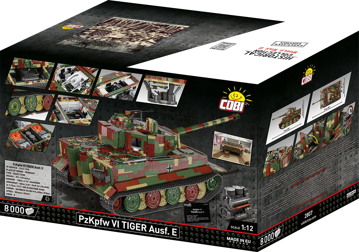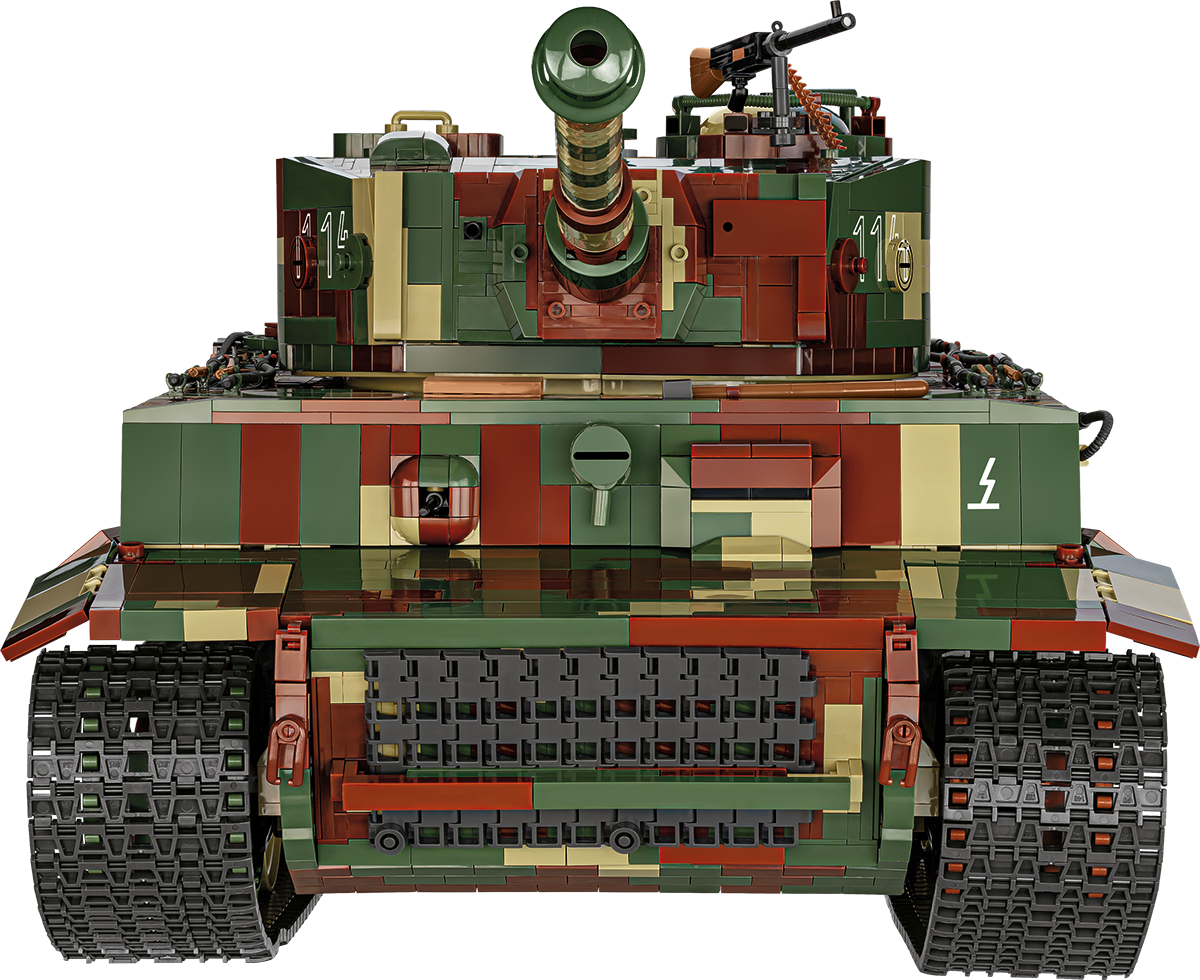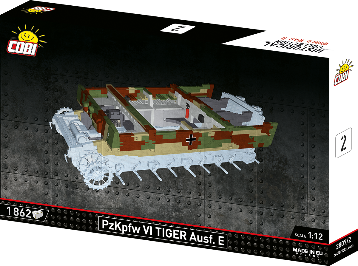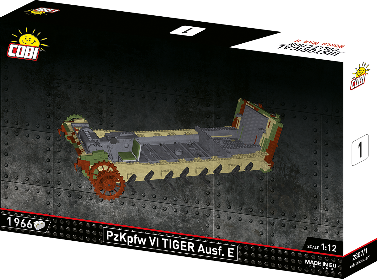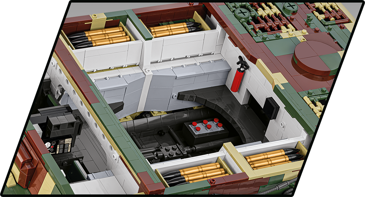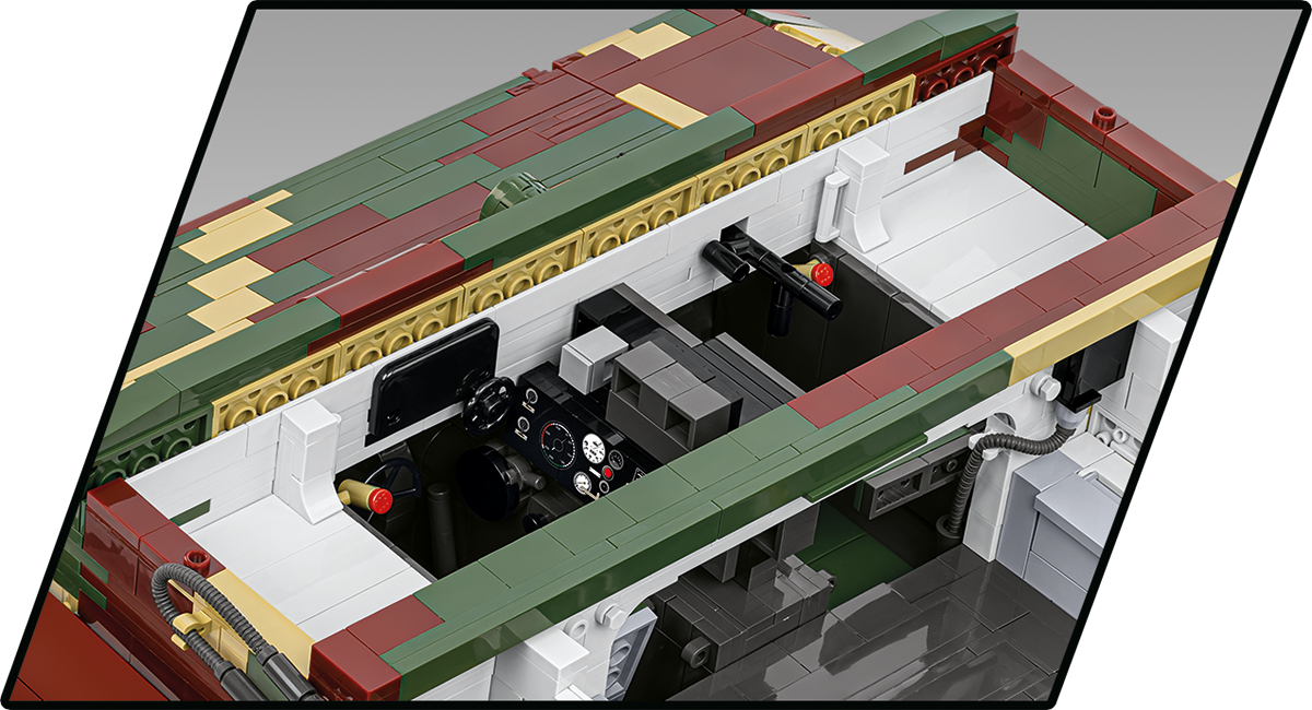 With 8,000 elements and considerable dimensions, this set is in a class of its own. When assembled, the Tiger 114 is almost 70 cm long and weighs almost 6 kilograms. This impressive result is not all, either. The new standard is set by a carefully reproduced interior, excellent exterior design, completely new elements and great functionality. The interior of the tank is meticulously reproduced in every corner, from the ammunition compartment to the main gun, knobs, switches and even the incredibly photorealistic engine. The Maybach HL230 engine itself has been reproduced to the smallest detail from 300 elements and could be released as a separate set. Just let us remind you that some planes from the Historical Collection series have 300 elements, and in our new Tiger you will build the engine alone from this many blocks! The exterior also raises the bar in terms of accuracy of proportions and details, which only a set of this size can provide. The set also contains many completely new and movable elements. These include the rotating turret, movable gun and opening hatches. The wheels and tracks work exactly as in the original museum model! Although we have done similar things for other tanks at COBI (especially in 1:28 scale), the Tiger "114" together with its predecessor with the number "131" represents a new level of design, photorealism and impressive size and precision.