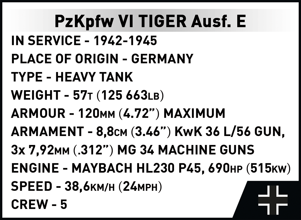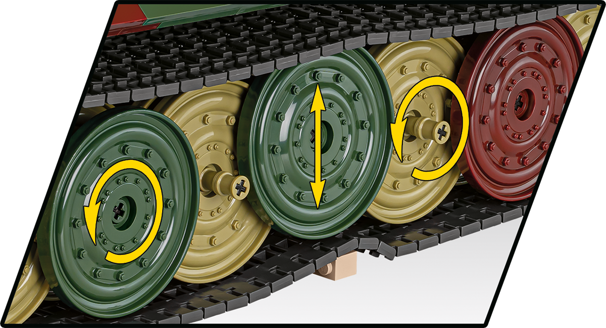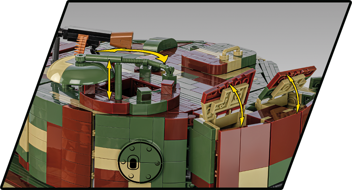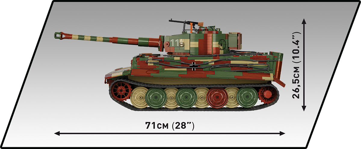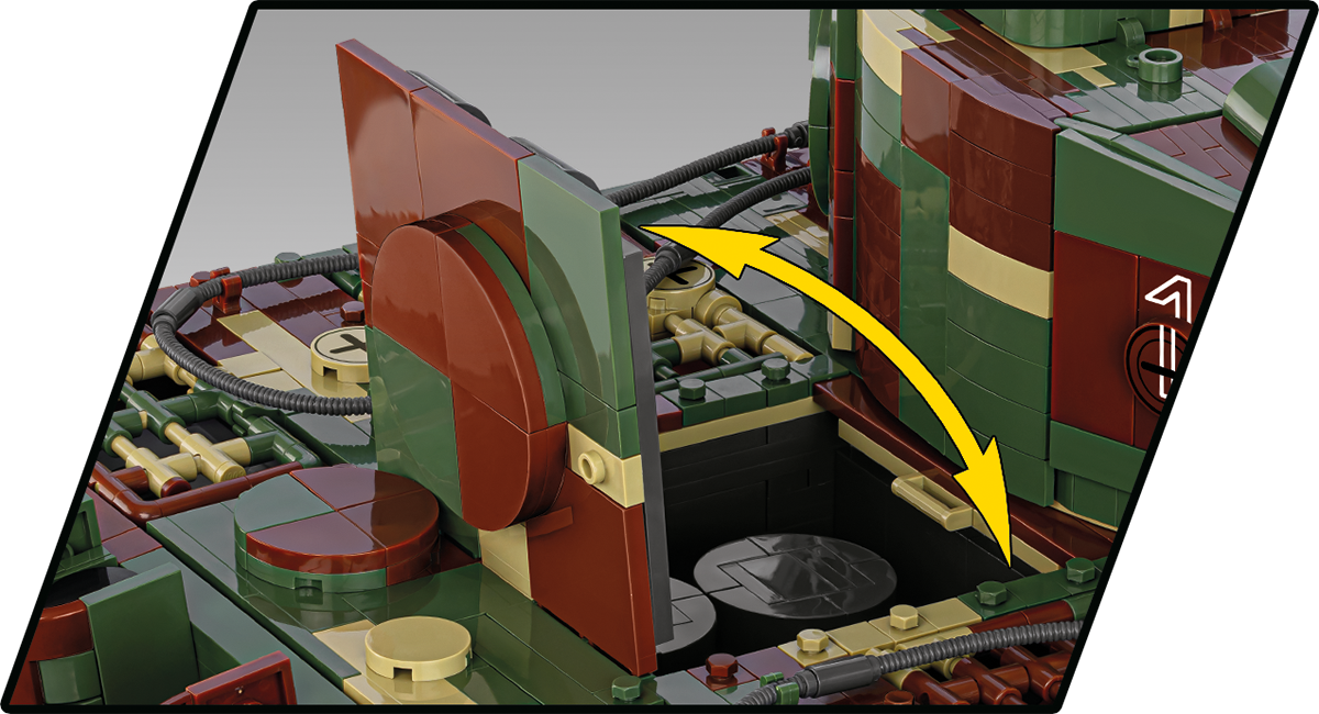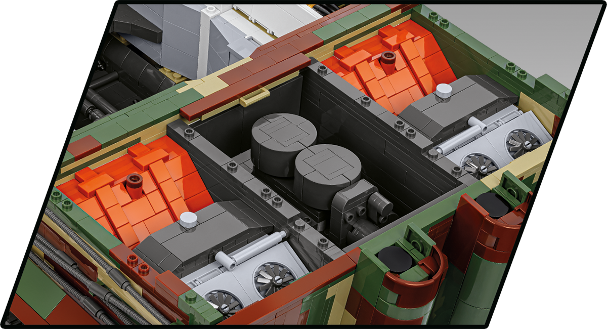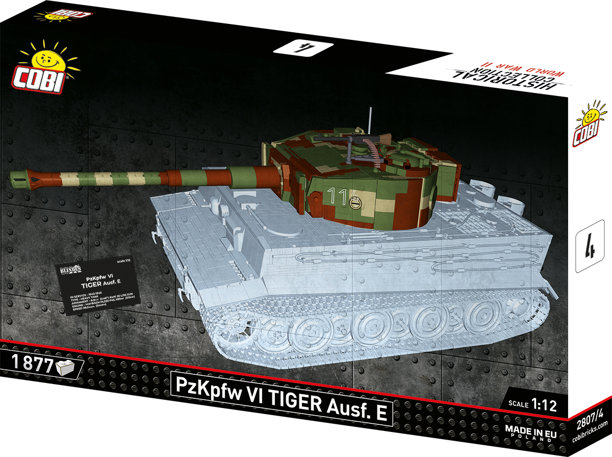 With 8,000 elements and considerable dimensions, this set is in a class of its own. When assembled, the Tiger 114 is almost 70 cm long and weighs almost 6 kilograms. This impressive result is not all, either. The new standard is set by a carefully reproduced interior, excellent exterior design, completely new elements and great functionality. The interior of the tank is meticulously reproduced in every corner, from the ammunition compartment to the main gun, knobs, switches and even the incredibly photorealistic engine. The Maybach HL230 engine itself has been reproduced to the smallest detail from 300 elements and could be released as a separate set. Just let us remind you that some planes from the Historical Collection series have 300 elements, and in our new Tiger you will build the engine alone from this many blocks! The exterior also raises the bar in terms of accuracy of proportions and details, which only a set of this size can provide. The set also contains many completely new and movable elements. These include the rotating turret, movable gun and opening hatches. The wheels and tracks work exactly as in the original museum model! Although we have done similar things for other tanks at COBI (especially in 1:28 scale), the Tiger "114" together with its predecessor with the number "131" represents a new level of design, photorealism and impressive size and precision.