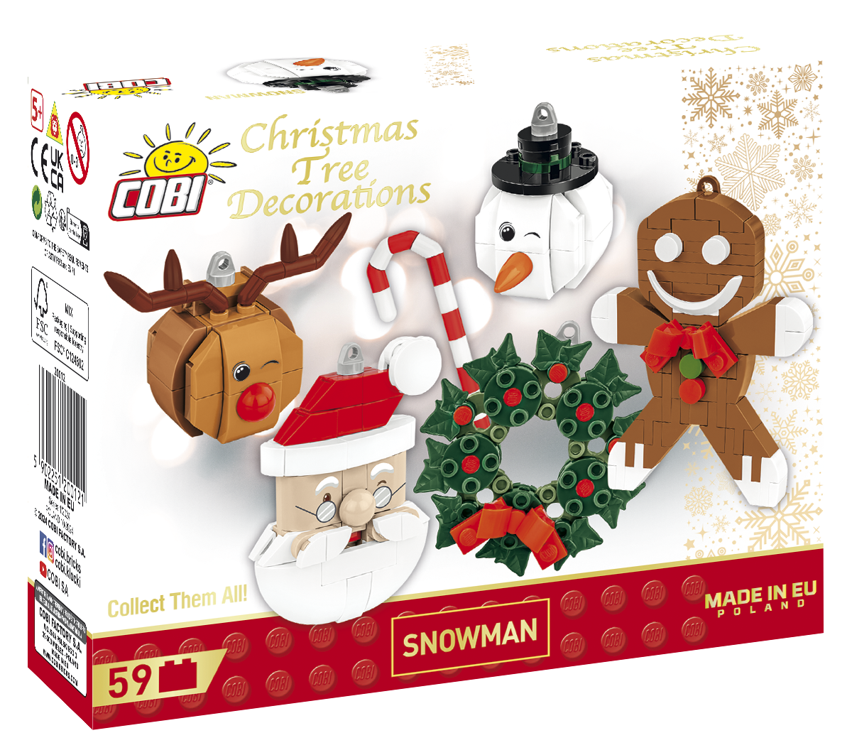 Not much snow outside the window this year? No problem! Build a beautiful Christmas ornament with a snowman motif. Thanks to the block with a ring, you can thread a ribbon or string to hang the decoration, especially on a Christmas tree! Build a Christmas atmosphere or give someone an unusual gift! The charming block decoration is very easy to build thanks to the intuitive instructions. Hand-made decorations are the most fun! A block with a print is included!