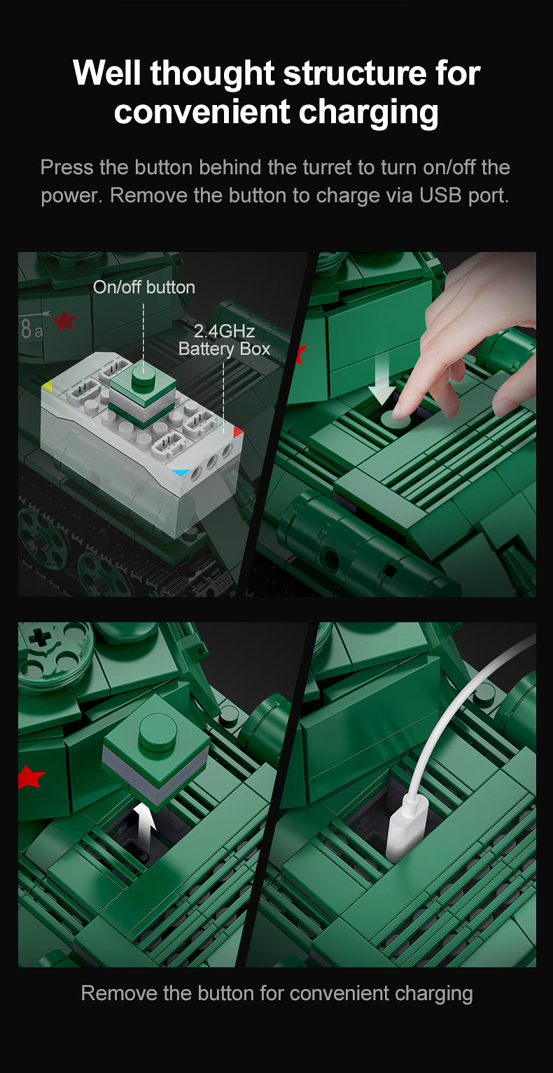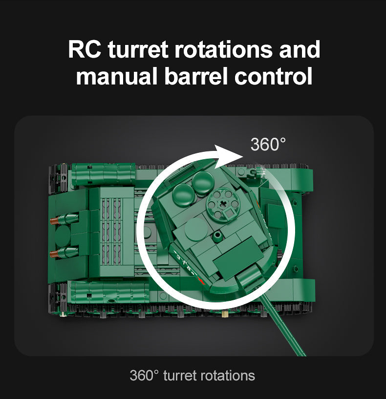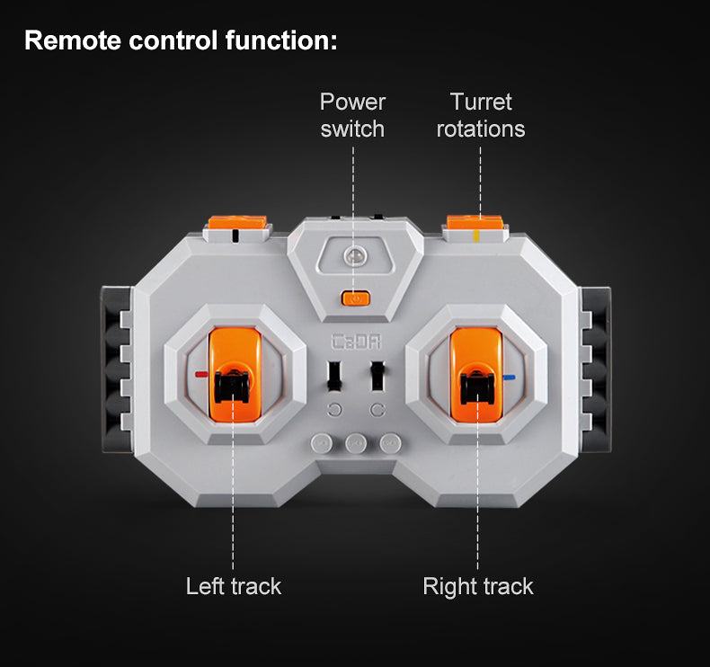 Remote Control Function: 2.4GHz remote control allows for multiple car interactions/play, automatic frequency matching, ultra-long remote control distance, flexible body rotation, and remote control operation of forward/backward/left turn/right turn, and turret rotation control.